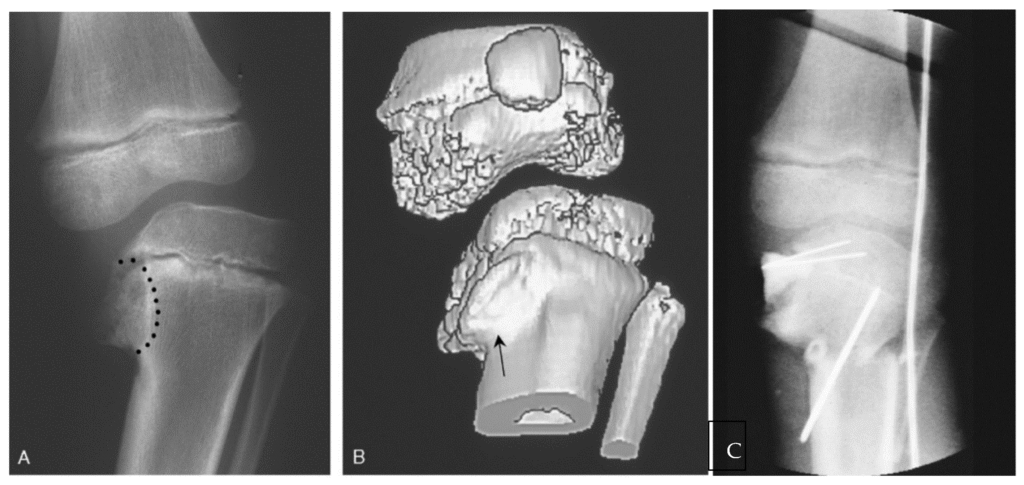 This is the most common surgical procedure for Blount’s disease correction. It involves cutting the tibia near the knee and realigning it to correct the varus deformity.
