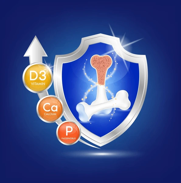 Vitamin D is a fat-soluble vitamin that facilitates calcium absorption in the gut and maintains adequate serum calcium and phosphate concentrations to enable normal bone mineralization. It also modulates immune function and inflammation. The body synthesizes vitamin D in the skin upon exposure to sunlight, and it can also be obtained from dietary sources.